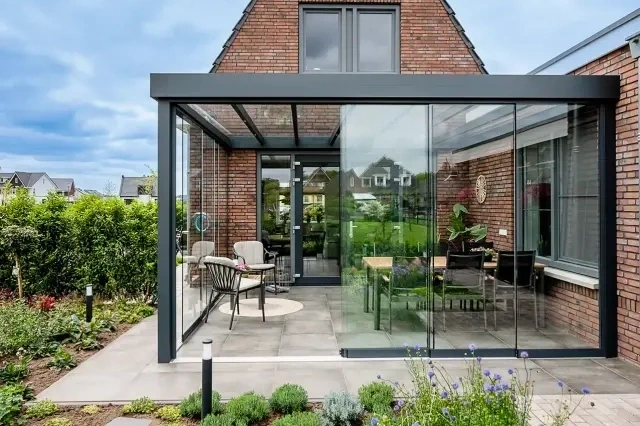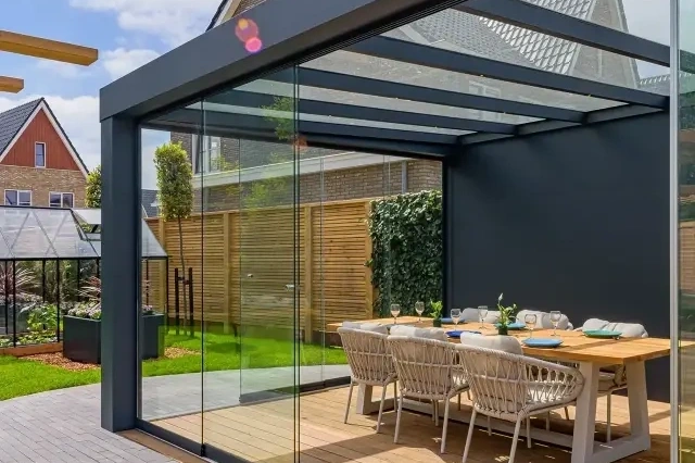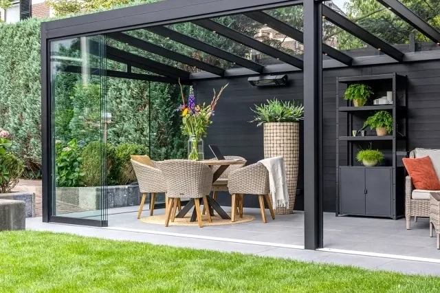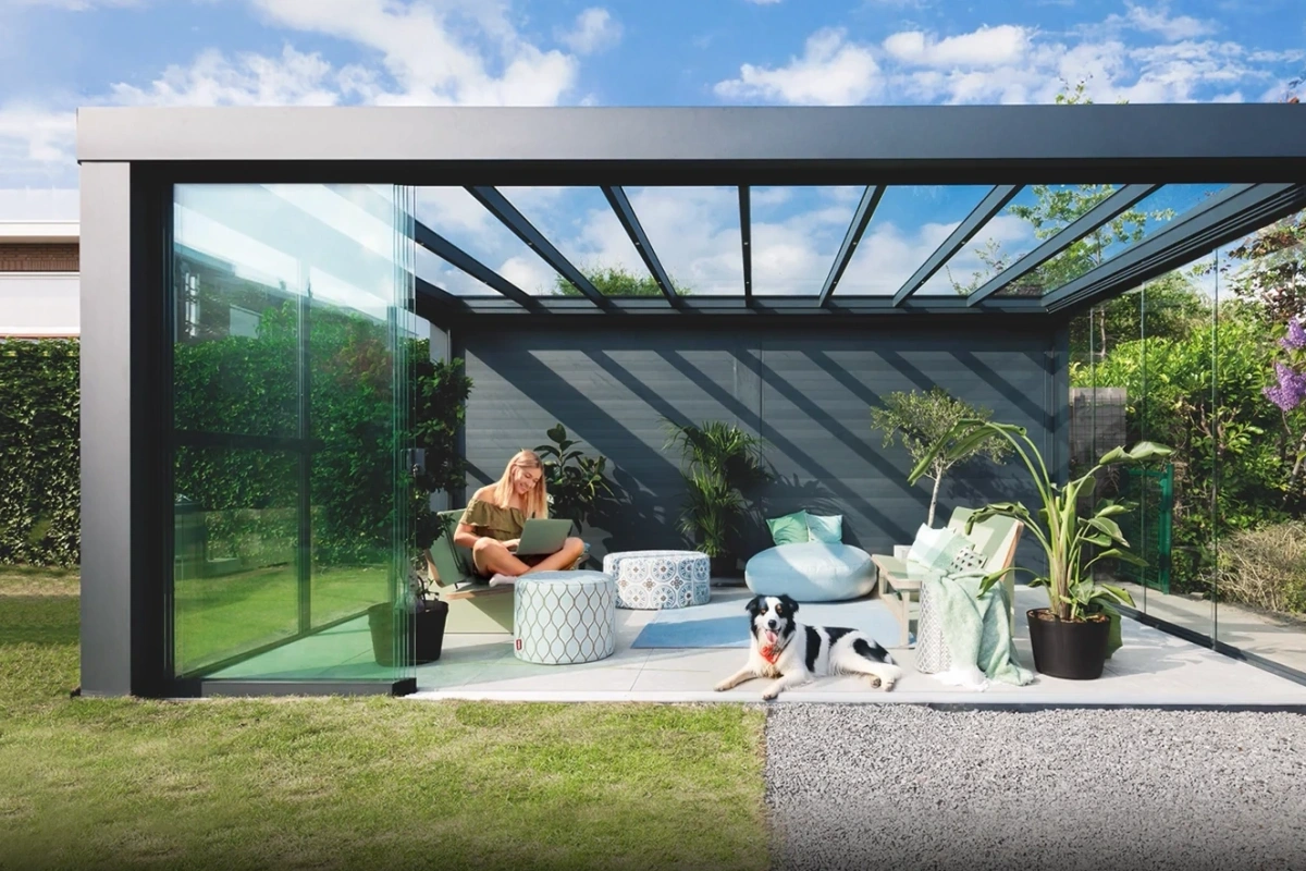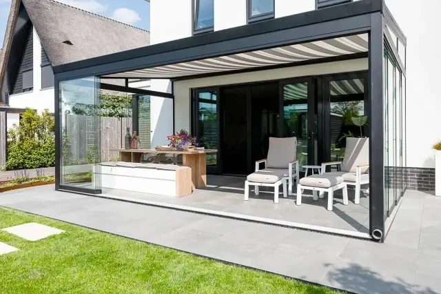 Een tuinkamer is eigenlijk een veranda of overkapping bv. strak sluitende glasschuifwanden aan de voorkanten en een vast aluminium glaskozijn of een strak afgewerkte aluminium rabatwand aan de zijkant. Hij is niet geïsoleerd, maar wel licht, ruim en comfortabel. Perfect voor een ontspannen ochtend met je koffie, een gezellige avond met familie of vrienden of gewoon extra leefruimte voor jezelf, je gezin of je gasten.